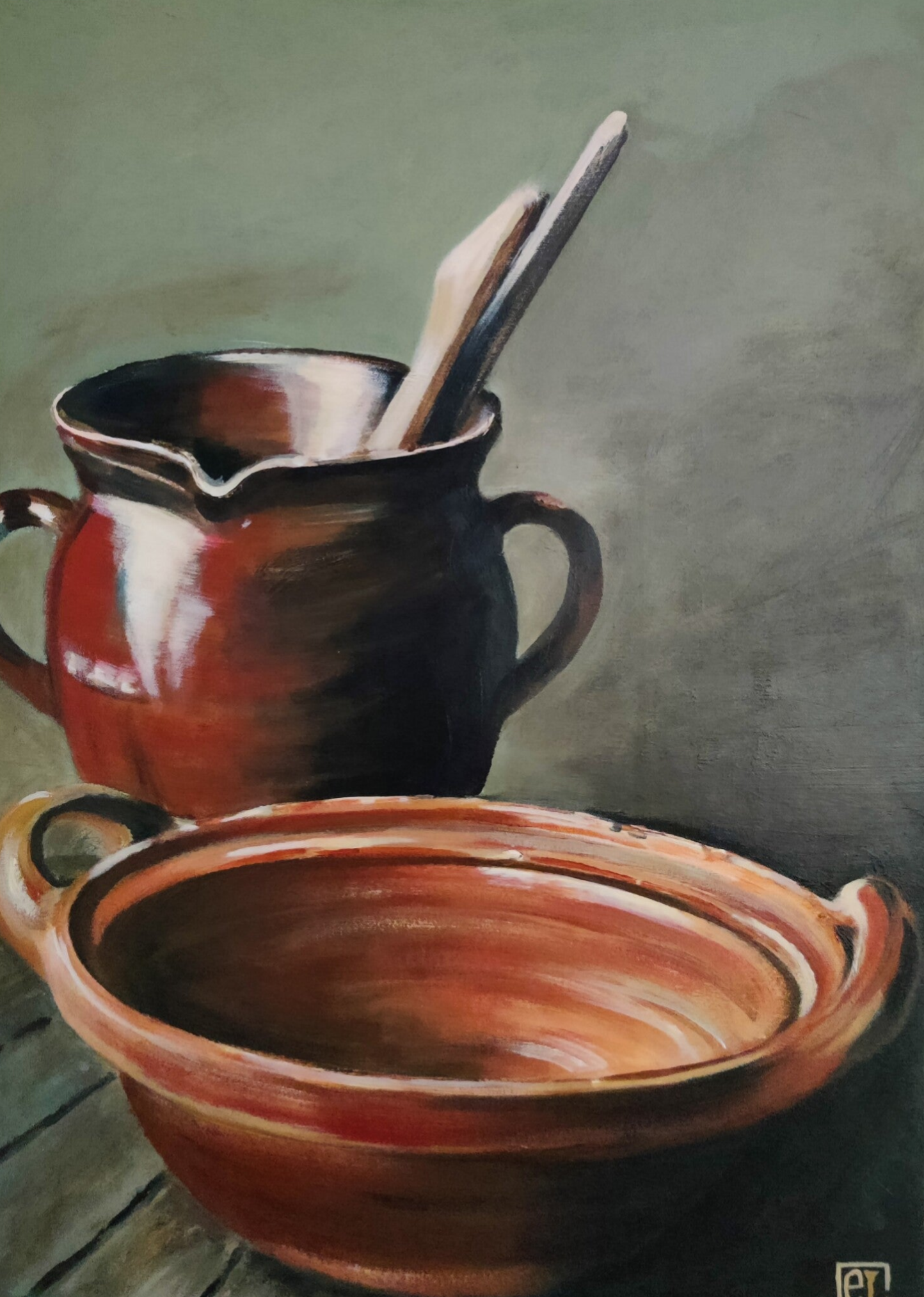 Kruik en schaal ~ 70x50 cm