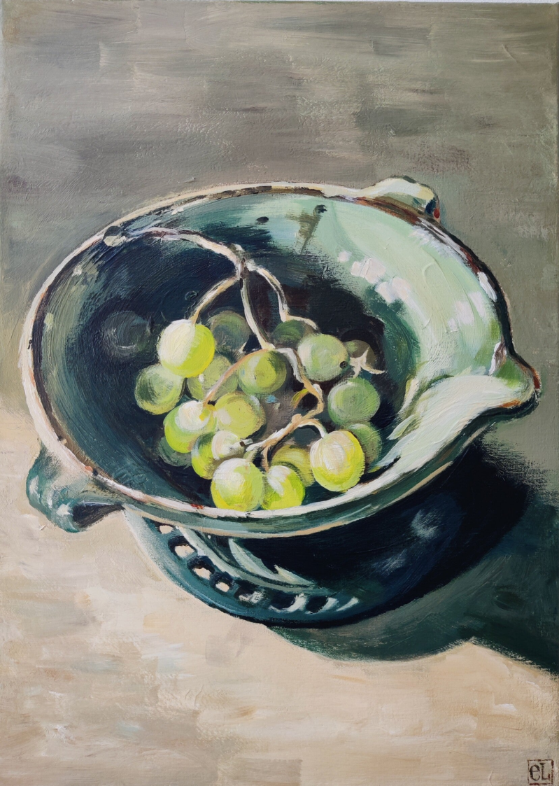 Druiven in antieke schaal ~ 70x50 cm