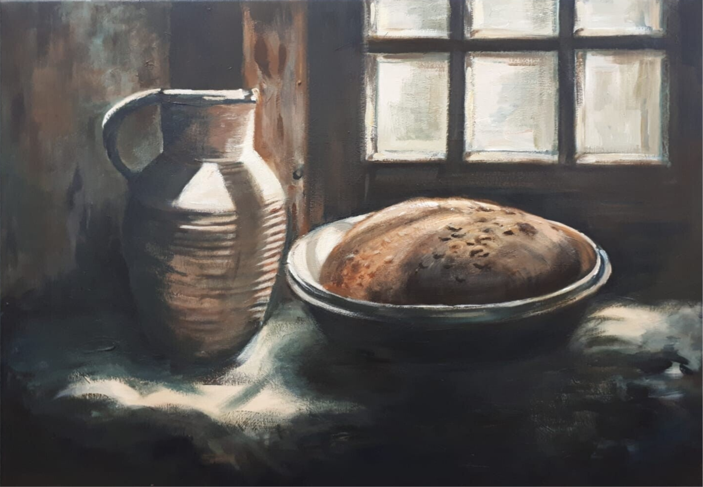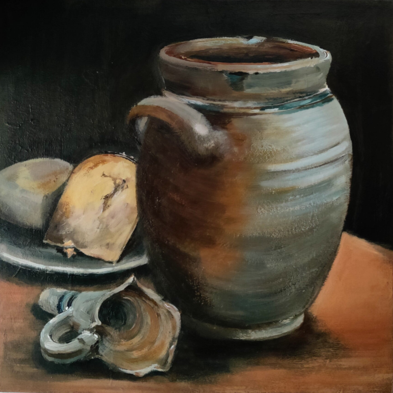 Kruik en oude kaas stukken ~ 50x50 cm