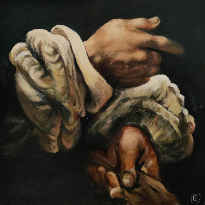 GERESERVEERD ~ 17e eeuwse handen naar Rembrandt ~ 70x70 cm